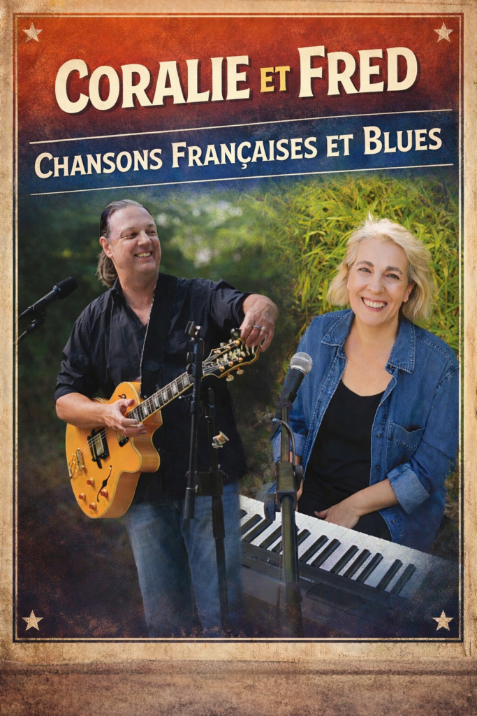 Le répertoire de Coralie et Fred est également composé des reprises de leurs influences. Vous serez surpris par le timbre de voix de Coralie qui, sans imitation, transmet l’univers sensible et énergique de Véronique Sanson dont les chansons ont une place de choix. Quant au Blues, Fred le joue avec dévouement,  aussi bien en accordage standard qu’en open tuning. Muddy Waters et John Hammond.Jr sont ses références entre de nombreux autres…